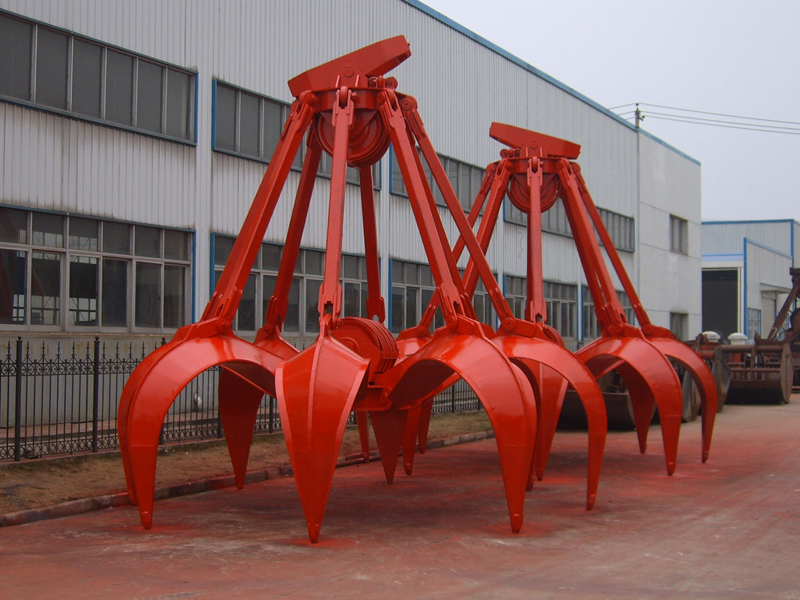 繩索多瓣抓斗分單索、雙索、四索等幾種結(jié)構(gòu)型式。主要用于大塊礦石、廢鋼、垃圾等不規(guī)則散貨物料的裝卸。